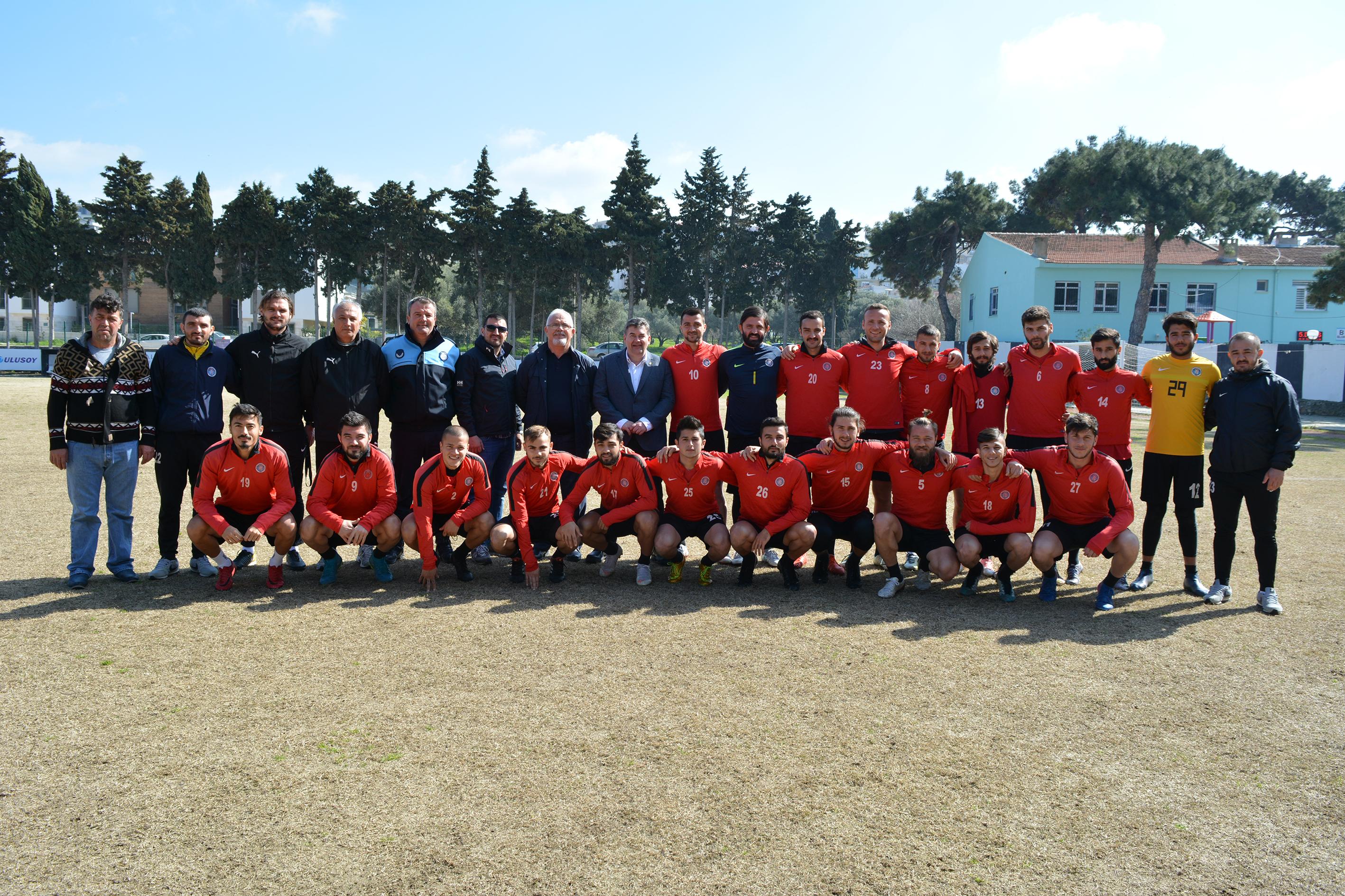 Çeşme Belediyespor futbolcuları ile söyleşti. Çeşme Belediyespor Kulübü Başkanı