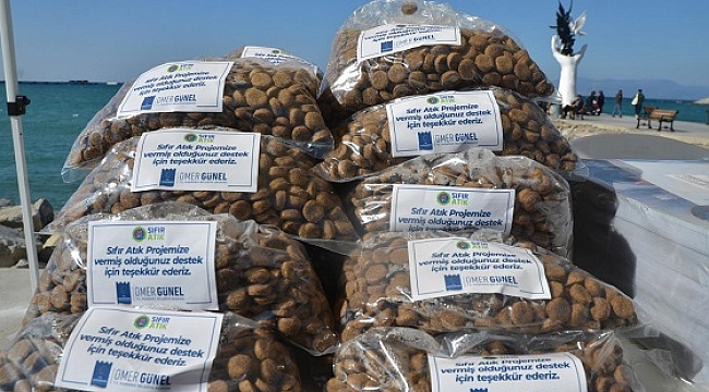 atık getiren vatandaşlara can dostlar için mama veriliyor.