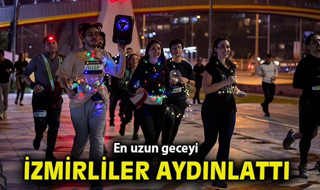 İzmir Büyükşehir Belediyesi, yılın en uzun gecesi 21 Aralık’ta 6,5 kilometrelik koşu düzenledi. En Uzun Gece Koşusu’na katılan İzmirliler, vücutlarına sardıkları ışıklarla renkli görüntüler oluşturdu.