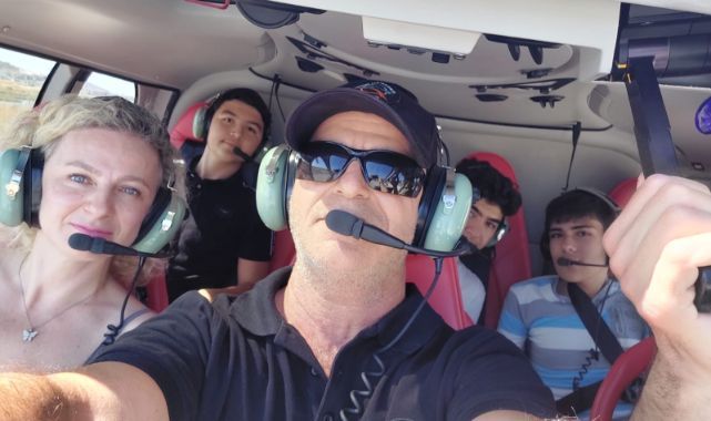 Engelli öğrenciler Çeşme'yi gökyüzünden seyretti