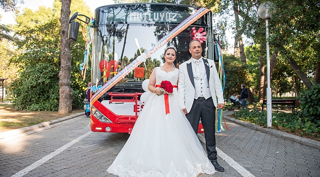 Otobüs gelin arabası olduMeslektaşlarının, ESHOT Gediz Atölyesi’nde süslediği “gelin otobüsü”, gelin Ayşe Akyol’u evinden aldı. Kısa bir şehir turunun ardından çiftin nikahı Kültürpark Evlendirme Dairesi’nde kıyıldı.