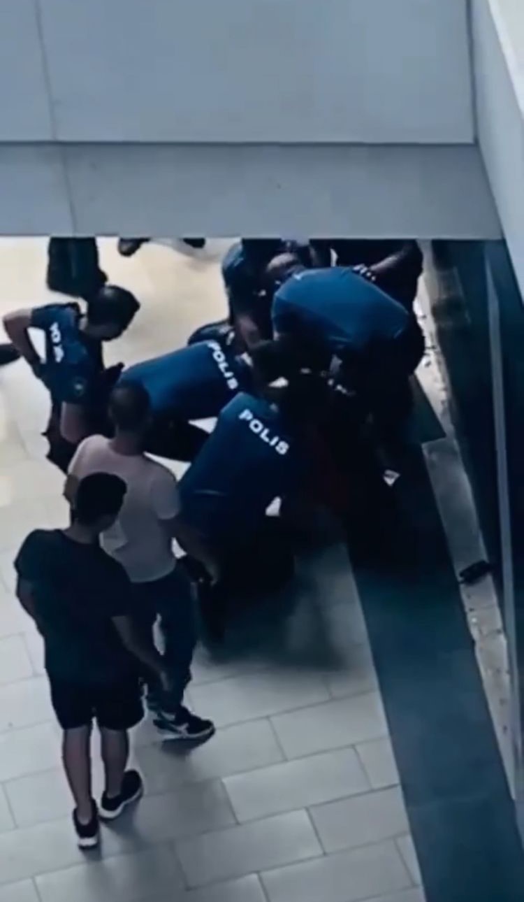 Olay, 10 Haziran günü Bornova ilçesinde bulunan bir AVM’de meydana geldi. Edinilen bilgiye göre, bir adamın bir kadını darp ettiğini gören çevredeki vatandaşlar durumu 112 Acil Çağrı Merkezine bildirdi. İhbar üzerine olay yerine gelen polis ekipleri, eşine şiddet uygulayan M.Y.’yi sakinleştirmeye çalıştı. O sırada saldırgan polislerin üstünü yürüyerek küfürler savurunca ekipler M.Y.’yi gözaltına almak istedi. Polislere teslim olmamakta direnen zanlı, biber gazının kullanılmasının ardından etkisiz hale getirildi. O anlar AVM’de bulunan vatandaşlar tarafından cep telefonu kamerasıyla görüntülendi.