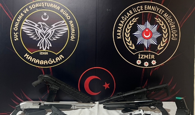Karabağlar İlçe Emniyet Müdürlüğü Suç Önleme ve Soruşturma Büro Amirliği'ne bağlı ekipler tarafından, çok sayıda silah barındırdıkları belirlenen G.T., B.H. ve M.F. ile ilgili detaylı analiz çalışmaları yürütüldü. Çalışmalar sonucunda şüphelilerin Karabağlar ve Konak ilçelerinde kayıt dışı kaldıkları adresler tespit edildi. Belirlenen adreslere düzenlenen eş zamanlı operasyonda; 3 adet ruhsatsız tabanca, 4 adet pompalı tüfek, 1 adet kurusıkı tabanca, 3 şarjör, 3 adet pompalı tüfek şarjörü, 1 adet tambur şarjör, 2 adet sürgü, 8 adet 7.65 mm fişek, 6 adet tüfek kartuşu ile 1 adet kama ele geçirildi. Operasyonda ayrıca uyuşturucu maddeye de rastlanırken, bir miktar metamfetamin maddesi ele geçirildi.