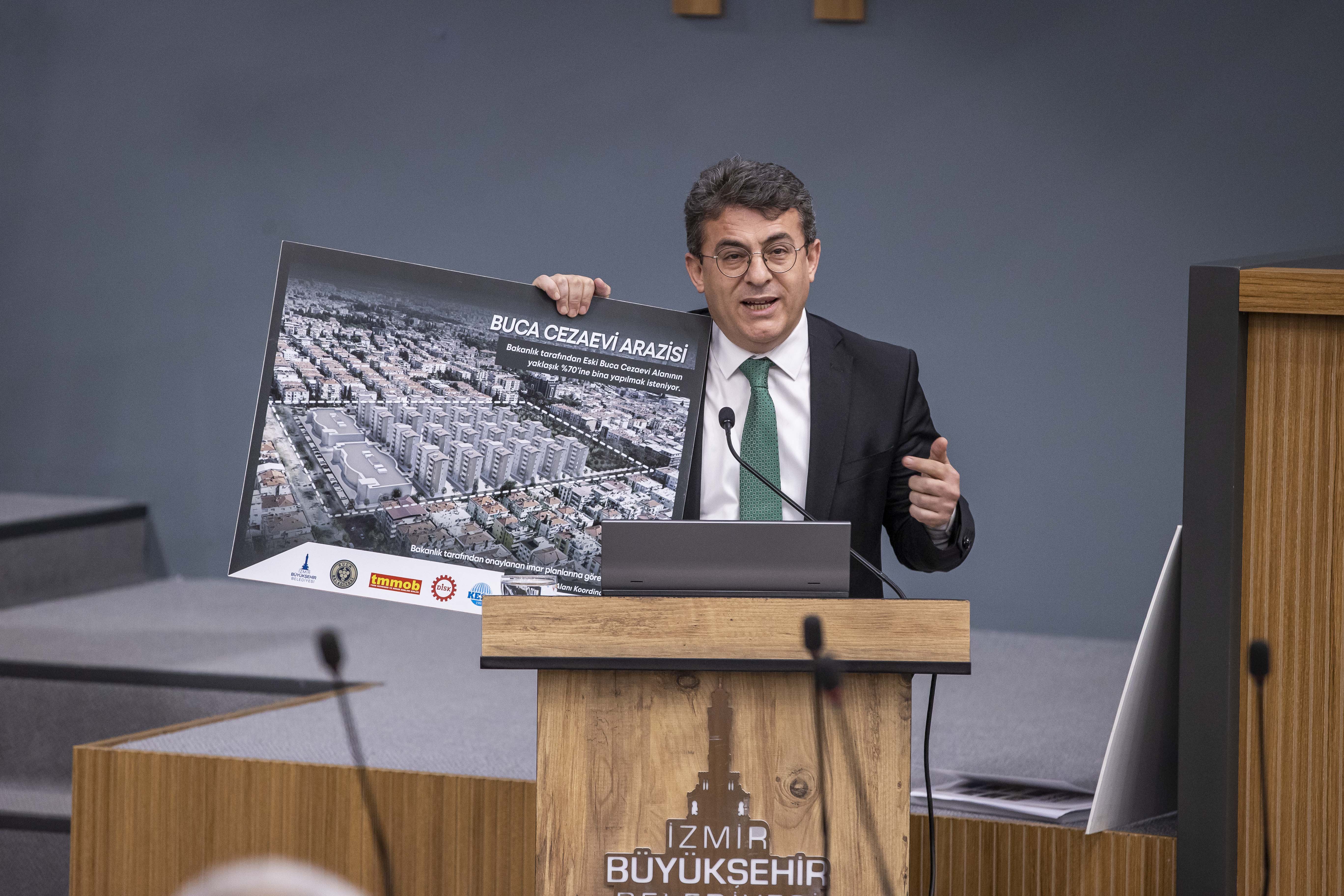 Buca Cezaevi arazisi örneğini vererek konuşmasına devam eden Aydın, “Söylemeye, ısrarla anlatmaya devam edeceğiz. Çevre Bakanlığının yaptığı plan kamu yararına aykırıdır. Arazinin yüzde 85’ine bina yapan, yeşil alanı sadece yüzde 15’lik kısma sıkıştıran plan hukuka da aykırıdır. Bu planın iptali istemi ile CHP Meclis Grubu olarak dava açtık. Bizim dışımızda İzBB, İzmir Barosu, meslek odaları, STK’lar ve kişiler de devam açtı. Bu davalar halen görülmekte. Yapmış olduğumuz yürütmeyi durdurma talebinin reddine dair kararı geçtiğimiz günlerde İzmir Bölge İdare Mahkemesi kaldırdı ve yerinde keşif yapıldıktan sonra karar verilmesini istedi. Davayı gören İzmir 4. İdare Mahkemesi yakında keşif günü belirleyecek. Bucalıları, İzmirlileri, çevreye, kamu yararına önem veren herkesi keşif gününde cezaevi arazisinde olmaya çağırıyoruz. Buca Cezaevi arazisi halkındır ve halka, İzmirlilere ait araziyi İzmir’in kurtuluşunun 100 yılı kutlanırken 9 Eylül 2022’de satılmasını İzmir halkı hiç unutmayacak, bu arazinin kamunun kullanımına açık yeşil alan olması için mücadele etmeyi sürdürecektir” diye konuştu.