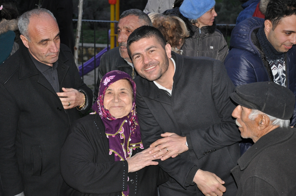 eşliğinde karşıladıkları Fatih Gürbüz'ü adeta bağrına bastı.