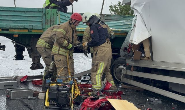 Arnavutköy’de yağışlı hava nedeniyle sürücüsünün direksiyon hakimiyetini kaybettiği tır kayarak yan dönünce yol kapandı. Yolun kapanmasıyla karşı şeritten gelen kamyonet tırı fark etmeyerek dorsesine, başka bir ticari araç ise kamyonete çarptı. 3 aracın karıştığı kaza da kamyonet sürücüsü aracına sıkışırken itfaiye ekiplerinin uzun süren çalışması sonucunda sıkıştığı aracından çıkartılan sürücü yaşamını yitirdi.