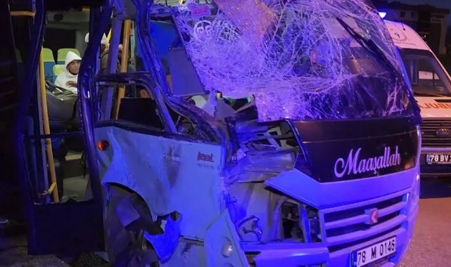 Karabük'te yolcu minibüsünün önünde seyreden yolcu otobüsüne çarpması sonucu 14 kişi yaralandı.