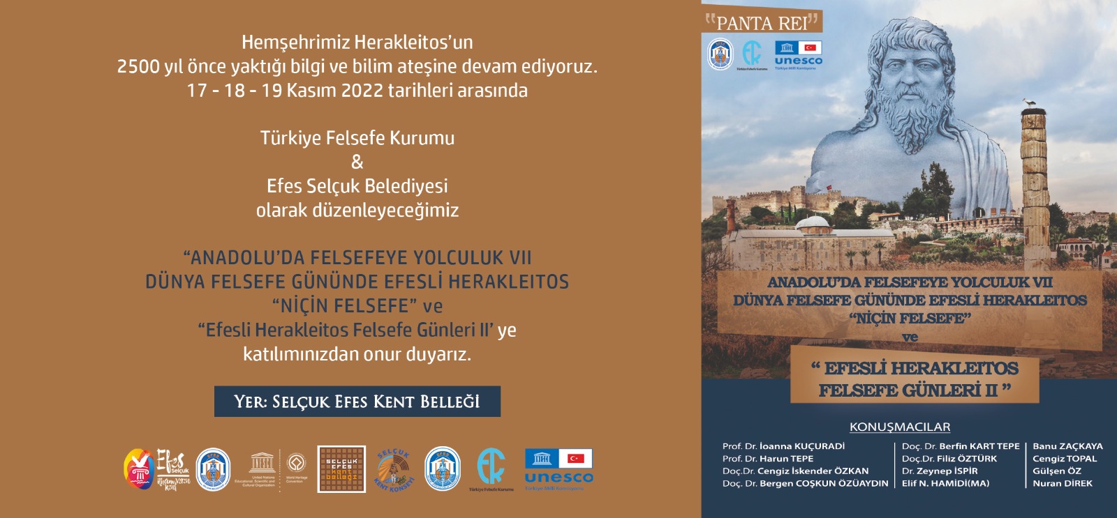 Efes Selçuk Belediyesi, İlham Veren Kentin hemşehrisi Herakleitos’un 2500 yıl önce yaktığı bilgi ve bilim ateşinin izinde Efesli Herakleitos Felsefe Günleri’nin ikincisini düzenliyor. Herakleitos Felsefe Günleri 17 Kasım Perşembe günü saat 10.00’da Efes Selçuk Belediye Başkanı Filiz Ceritoğlu Sengel ve Prof. Dr. İoanna Kuçuradi’nin açılış konuşmaları ile başlayacak.“Aynı nehirde iki defa yıkanılmaz” sözü ile değişimin kaçınılmaz olduğunu ve değişmeyen tek şeyin değişim olduğunu düşüncesi ile çağının ötesinde birçok düşünürü etkileyen Herakleitos adına Efes Selçuk’ta düzenlenecek Felsefe Günleri’nin ilk oturumunda “Herakleitos’un Süreç Felsefesi”, “Miletoslu Filozoflardan Efesoslu Herakleitos’a” ve “Herakleitos’un Nehrinde Boğulmak” konu başlıkları konuşulacak. Aynı gün içinde düzenlenecek ikinci oturumda “Tanrılar ve Efes ‘teki Tapınakları” , “Felsefî Bilginin Kişinin Yaşamına Sağlayabildikleri” konu başlıkları altında konuşulacak. 18 Kasım Cuma günü gerçekleşecek ikinci oturumda ise “Çocuklar İçin Felsefe Semineri” düzenlenecek.Herakleitos Felsefe Günleri ile ilgili ayrıntılı bilgi Efes Selçuk Belediyesi sosyal medya hesaplarından edinilebilecek.