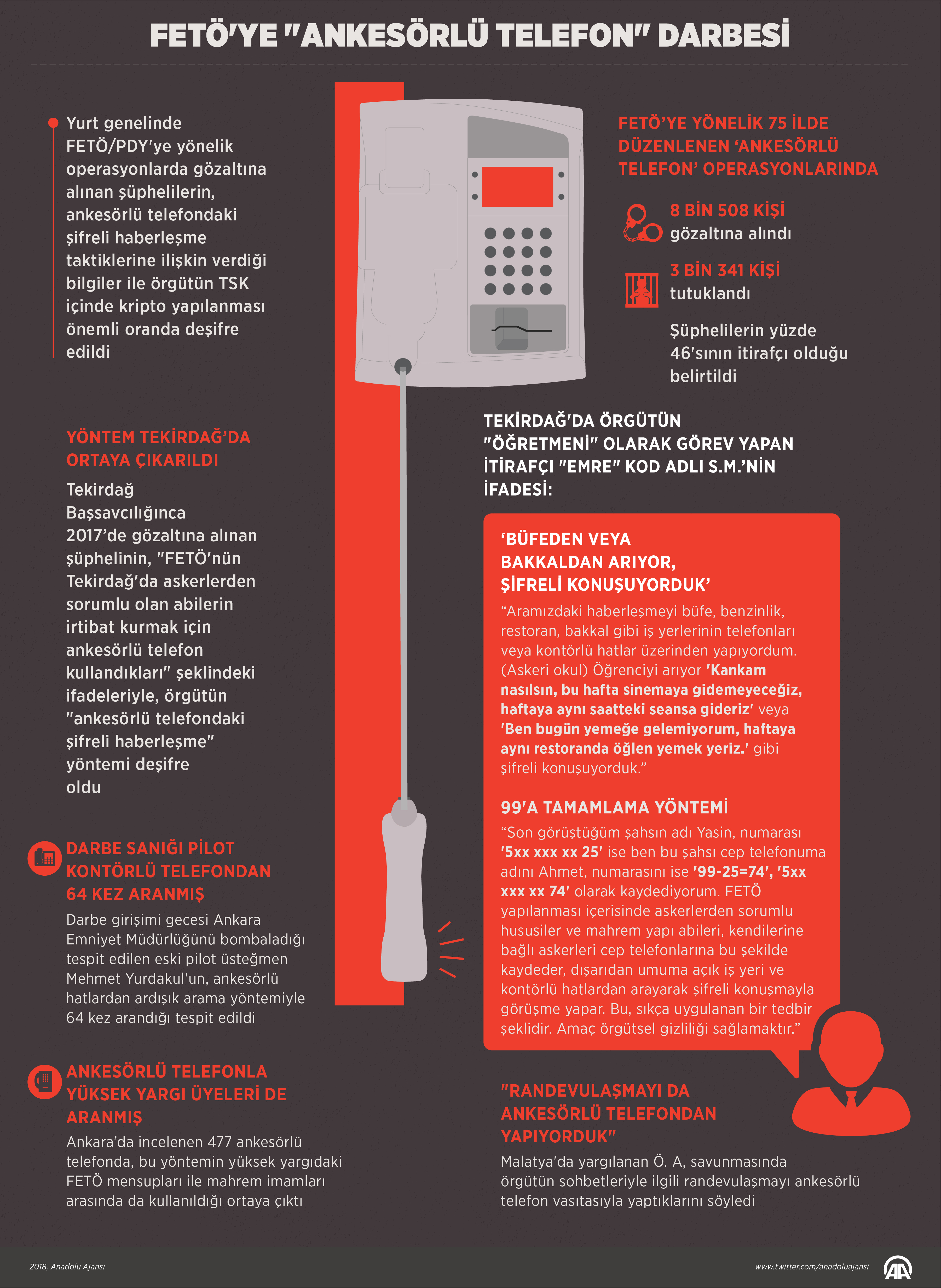 Yurt genelinde FETÖ/PDY'ye yönelik operasyonlarda gözaltına alınan şüphelilerin ankesörlü telefondaki şifreli haberleşme taktiklerine ilişkin verdiği bilgiler doğrultusunda örgütün kripto yapılanması önemli oranda deşifre edildi, operasyonlarla FETÖ'ye büyük darbe vuruldu.