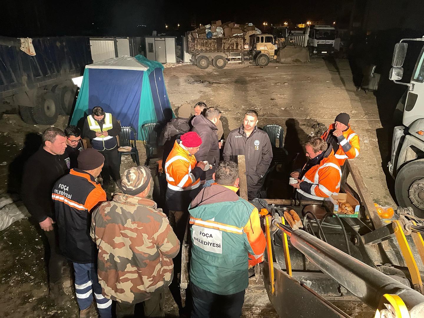 Hatay’ın Defne Belediyesi’ne entegre olan ekipler, altyapısı çalışmayan başlamayan şehirde konteyner kentlere elektrik sağlıyor, deposu olan evlere su takviye ediyor ve moloz taşıyor.Foça Belediyesinin deprem bölgesinde 1 kepçe, 1 tanker, 1 jeneratör aracı bulunuyor ve 15 personeli görev yapıyor.Büyük üzüntü içerisinde olduklarını, hayatını yitiren vatandaşlara Allah’tan rahmet ve yaralı vatandaşlara acil şifalar dileyen Foça Belediye Başkanı Fatih Gürbüz; ‘‘Hatay’ın Defne ilçesinde sokak sokak su dağıtımı yapan, moloz toplayan, fen işlerine ortak olan ekip arkadaşlarımla gurur duyuyorum. Bugünlerden bize kalacak tek şey dayanışma olacaktır.’’dedi.