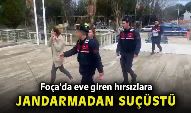 İzmir'in Foça ilçesinde bir eve giren iki kadın hırsız, jandarma ekipleri tarafından suçüstü yakalanarak gözaltına alındı. Şüpheliler jandarmadaki işlemlerin ardından adliyeye sevk edildi.