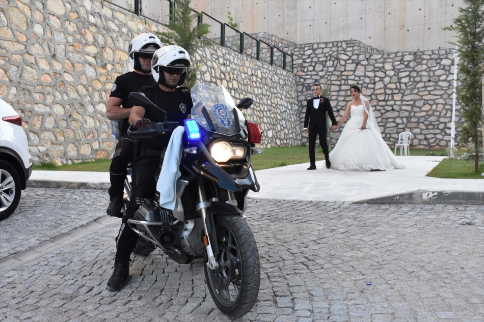 Şehit oğlunun düğününde polislerden konvoy