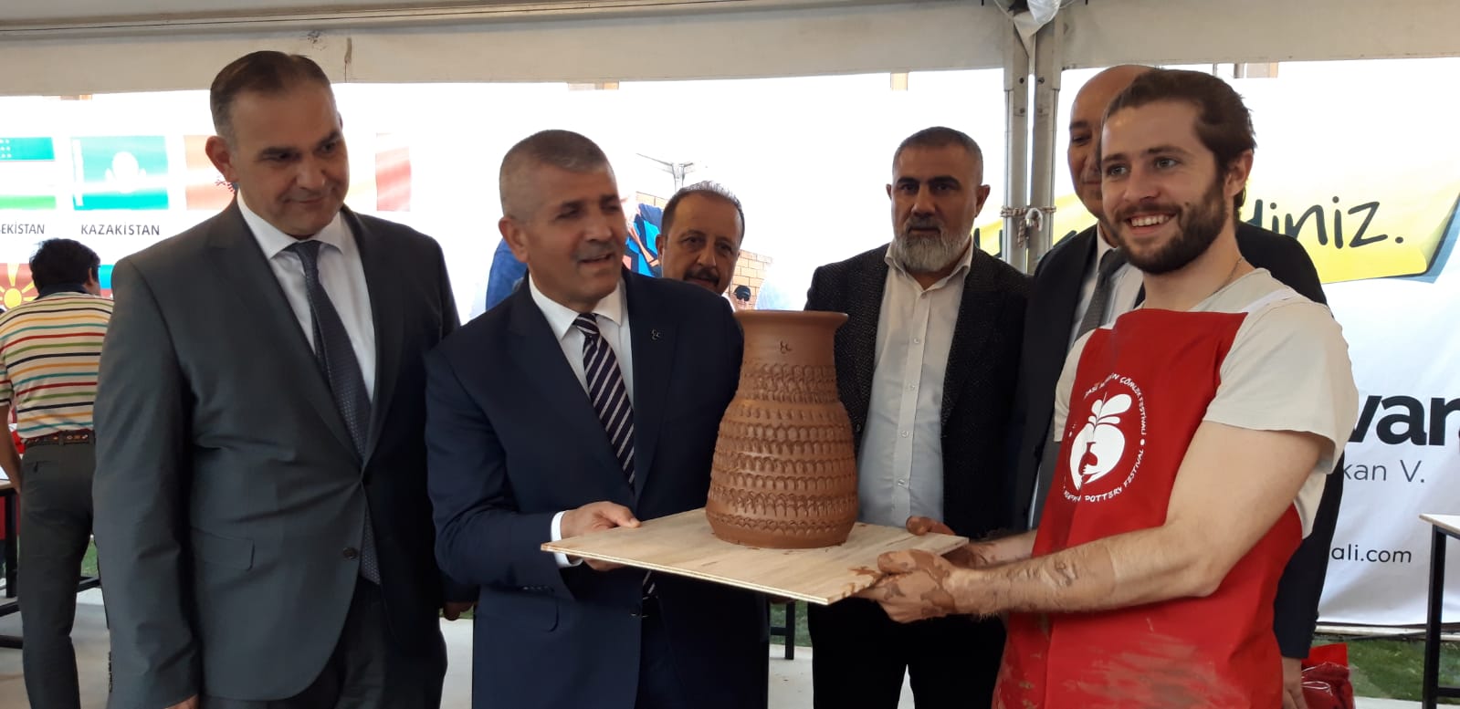 MHP İl Başkanı Veysel Şahin'in çömlek çamurundan yaptığı vazo büyük beğeni topladı.