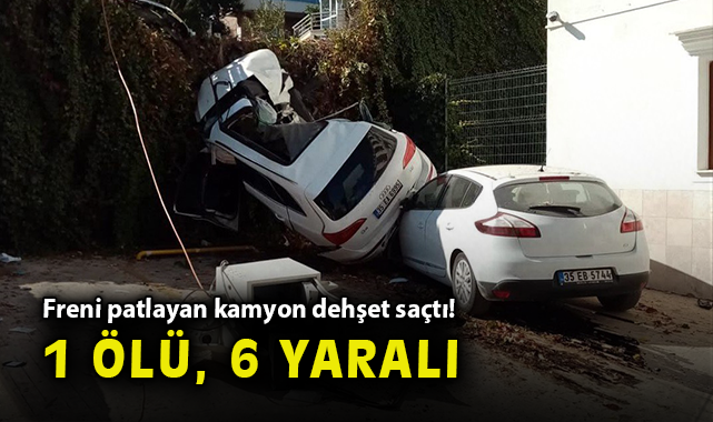 Kaza, saat 12.30 sıralarında ilçeye bağlı Ilıca Mahallesi'nde bulunan Zeytin Sokak'ta meydana geldi. Edinilen bilgiye göre, Erdal İnönü Caddesi'nden yokuş aşağı inen eşya yüklü 35 U 8231 plakalı kamyonun freni boşaldı. Süratle yokuş aşağı inen kamyon, Zeytin Sokak'ta seyir halinde olan Salih K. idaresindeki 35 EA 6995 plakalı otomobile çarptı. Çarpışmanın etkisiyle sürüklenen otomobil, beton bariyerleri aşarak yolun yaklaşık 3 metre aşağısında bulunan site bahçesinde park halindeki bir otomobilin üzerine düştü. Kamyon ise site bahçesine düşmeden durabildi. Kazayı gören sürücülerin ihbarı üzerine olay yerine polis, itfaiye ve sağlık ekipleri sevk edildi.