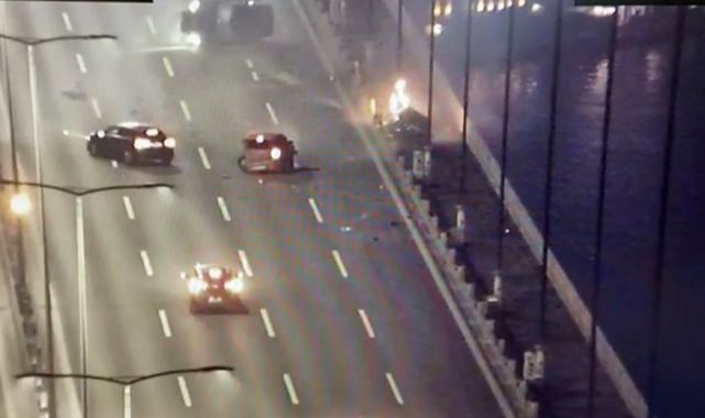 Fatih Sultan Mehmet Köprüsü'nde zincirleme trafik kazası meydana gelmiş, 4 aracın karıştığı kazada bir otomobilde yangın çıkmıştı. 3 kişinin yaralandığı kaza anının kamera görüntüleri ortaya çıktı.