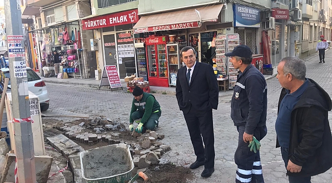 Göztepe Parkı’nda vatandaşın rahat bir zeminde yürüyebilmesi için parke taşları