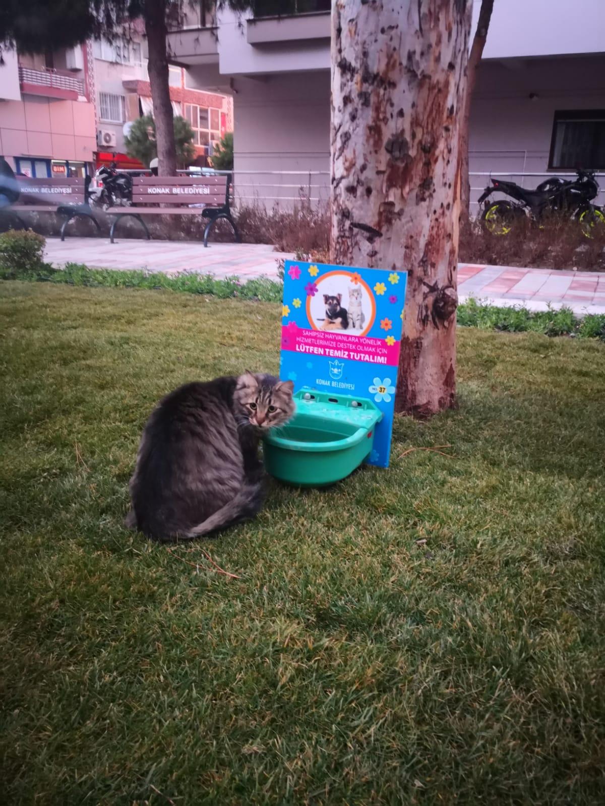 parka sokak hayvanlarının su içebileceği otomatik su içme hazneleri de