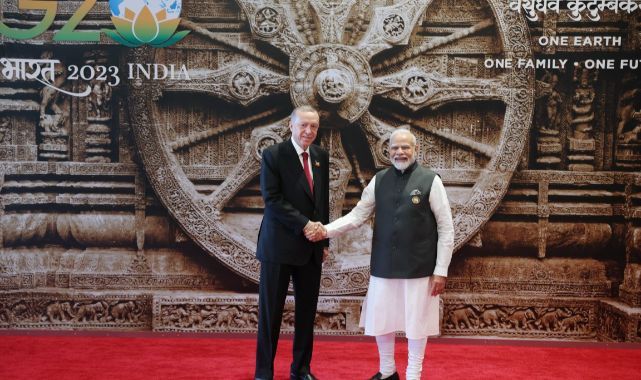 Hindistan Başbakanı Narendra Modi, Bharat Mandapam Uluslararası Fuar ve Kongre Merkezi'ndeki törende zirveye katılan liderleri tek tek karşılayarak fotoğraf çektirdi.