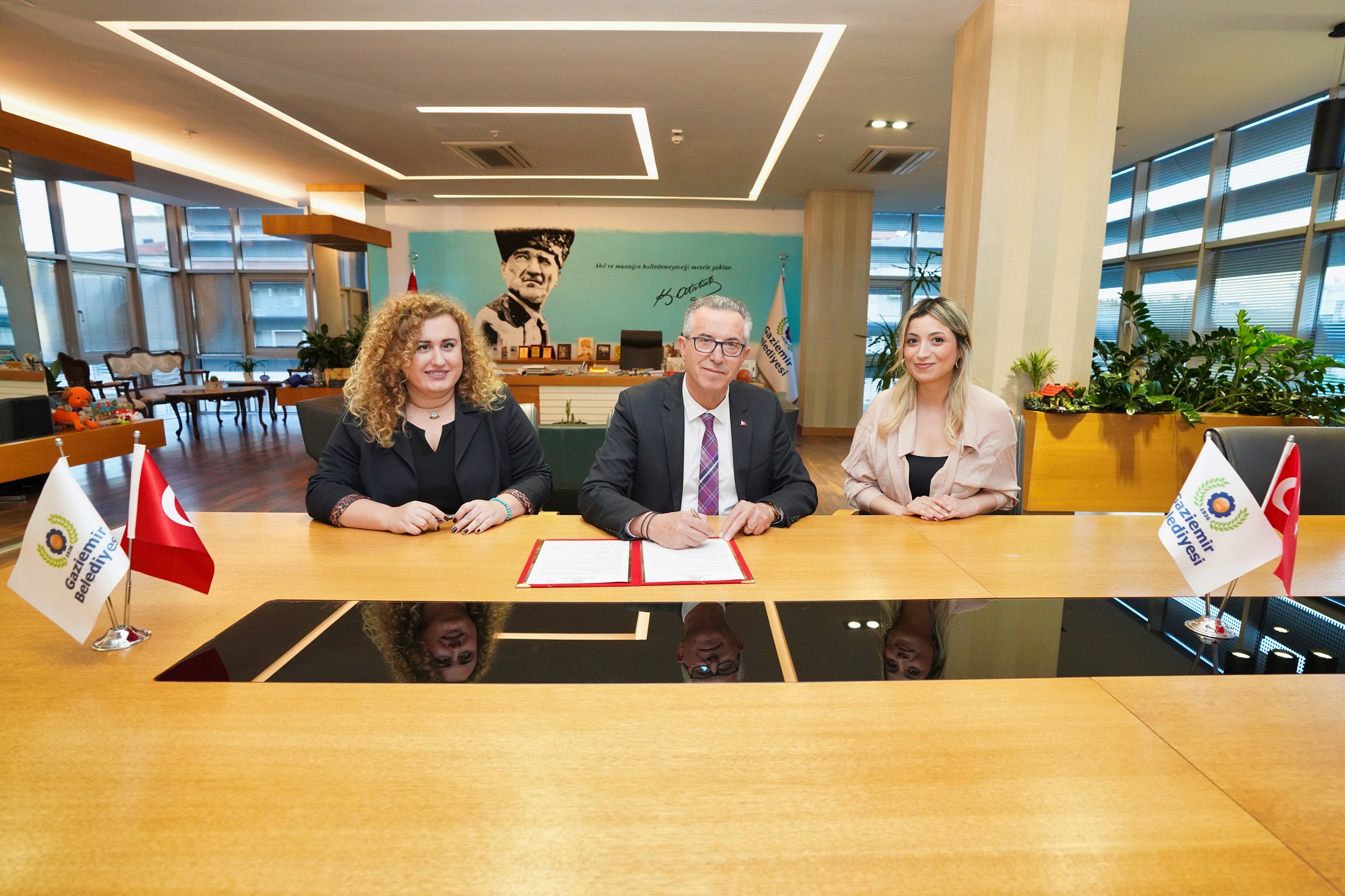 “Gaziemir’in kapılarını Avrupa’ya açacağız”Gençlerin sorunlarına ve ihtiyaçlarına yönelik ulusal ve uluslararası alanda çalışmalar yürüttüklerini ifade eden Pi Gençlik Derneği Başkanı Begüm İntepeler de, “Gençlere kıymet veren Gaziemir Belediye Başkanımız Halil Arda ile protokol imzalayarak çalışmalarımızı resmiyete dökmek istedik. Gaziemir’deki genç arkadaşlar, Pi Gençlik Derneği ve Avrupa’dan gönüllü olarak gelecek gençlerle birlikte çok kıymetli çalışmalar yapacağımıza inanıyorum. Gençlerle beraber Gaziemir’in kapılarını Avrupa’ya açacağız. Dolayısıyla bu protokol bizim için çok kıymetli bu fırsatı sağladı için Belediye Başkanımız Halil Arda’ya teşekkür ediyorum” dedi.