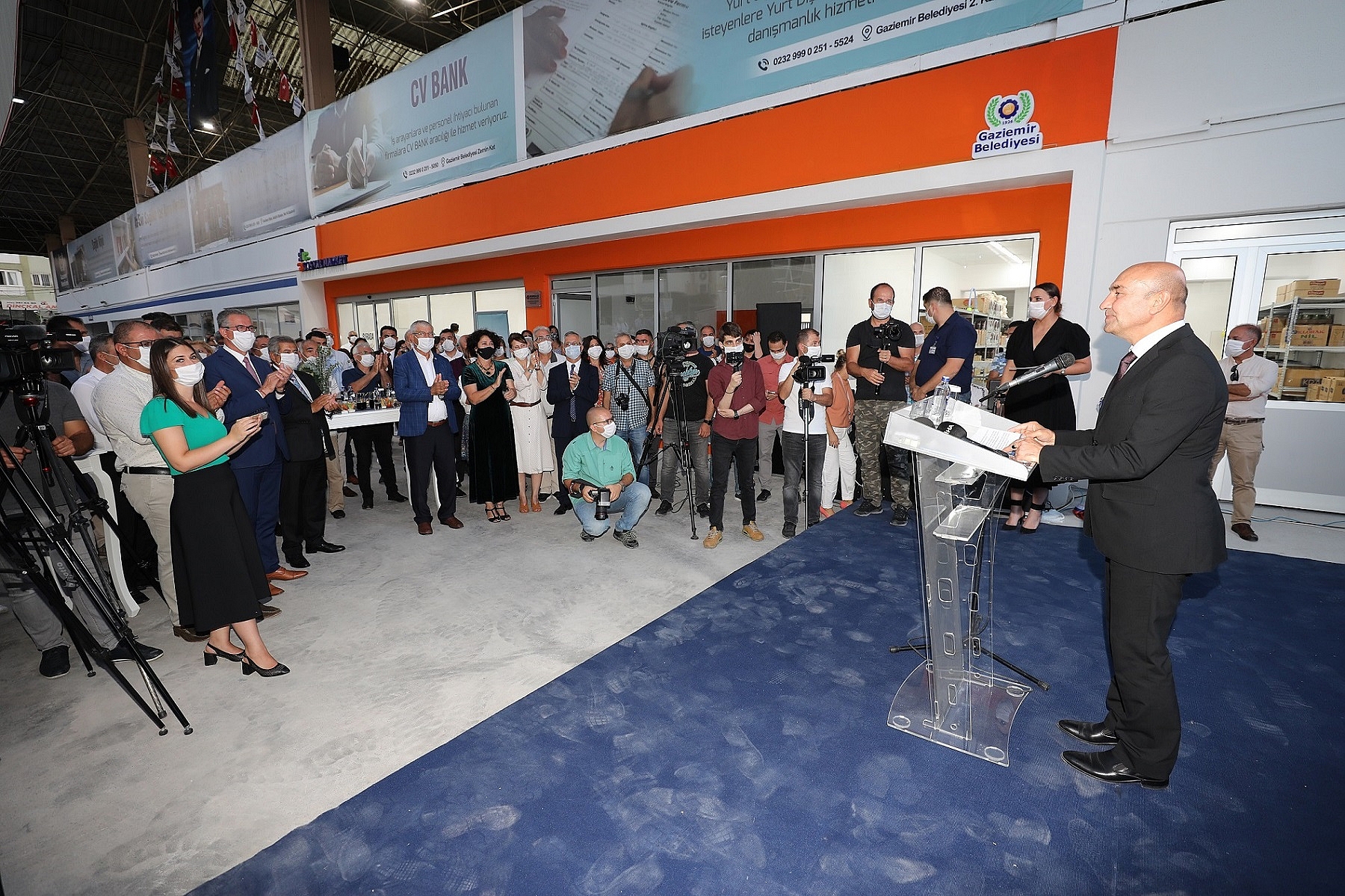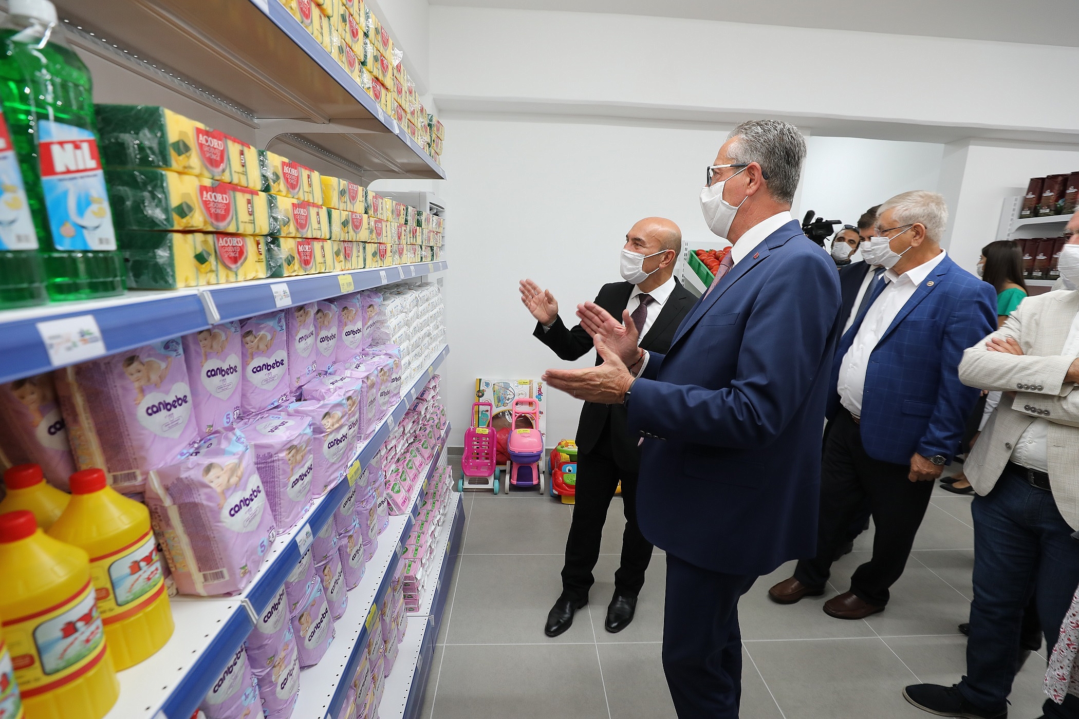 İzmir Büyükşehir Belediye Başkanı Tunç Soyer de Koronavirüs salgını nedeniyle dayanışma ve yardımlaşmanın öneminin ortaya çıktığına vurgu yaparak “İyilikten, dayanışmadan daha iyi bir proje olabilir mi?” diye konuştu. ESBAŞ CEO’su Dr. Faruk Güler, Sosyal Market’in Gaziemirlilerin hayatına dokunacak bir proje olduğunu vurguladı. Gaziemir Belediyesi’nin pusula belediyecilik anlayışıyla yaşama geçirdiği “Sosyal Market” dün kapılarını açtı. Gaziemir Belediye Başkanı Halil Arda ile eşi Gaziemir Gönüllü Kadınlar Derneği Başkanı Deniz Arda’nın ev sahipliğinde gerçekleştirilen Gaziemir Merkez Pazar Yeri’nin altında bulunan “Sosyal Market”in açılış törenine CHP İzmir Milletvekili Kani Beko, İzmir Büyükşehir Belediye Başkanı Tunç Soyer, eşi İzmir Köy-Koop Birliği Yönetim Kurulu Başkanı Neptün Soyer, Karşıyaka Belediye Başkanı Cemil Tugay ve eşi Öznur Tugay, Beydağ Belediye Başkanı Feridun Yılmazlar ve eşi Filiz Yılmazlar, Menderes Belediye Başkanı Mustafa Kayalar ve eşi Aslı Kayalar, Seferihisar Belediye Başkanı İsmail Yetişkin’in eşi Fatma Yetişkin, Tire Belediye Başkanı Salih Atakan Duran’ın eşi Necibe Duran, İzmir Büyükşehir Belediyesi Genel Sekreteri Buğra Gökçe ile İzmir Büyükşehir Belediyesi bürokratları, DİSK Ege Bölge Temsilcisi Memiş Sarı, belediye meclis üyeleri, sivil toplum örgütlerinin ve siyasi partilerin temsilcileri, belediye çalışanları, muhtarlar ile Gaziemirliler katıldı.