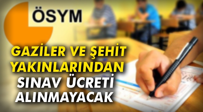 Gaziler ve şehit yakınlarından sınav ücreti alınmayacak