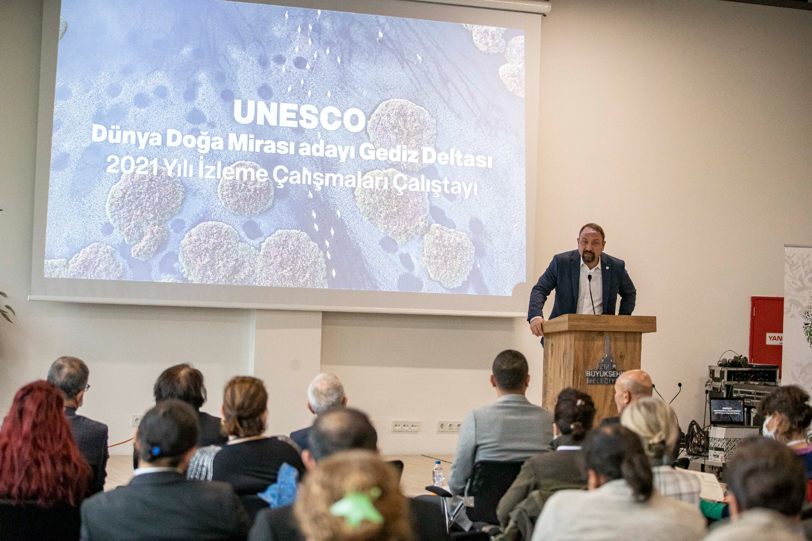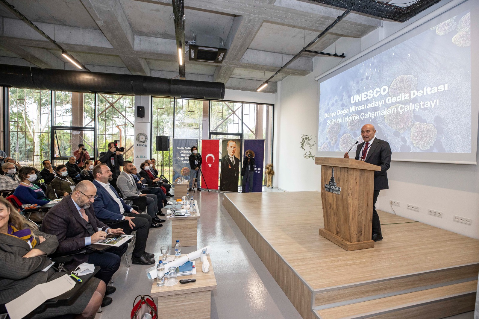 İzmir Büyükşehir Belediye Başkanı Tunç Soyer, UNESCO Dünya Doğa Mirası Listesi adayı Gediz Deltası’nda 2021 yılı boyunca yürütülen bilimsel çalışmaların aktarıldığı çalıştaya katıldı. Doğa Derneği’nin İzmir Büyükşehir Belediyesi’nin katkılarıyla yıl boyunca Gediz Deltası’nda yaptığı biyoçeşitlilik araştırma bulgularının ve eylem planının görüşüldüğü çalıştayda konuşan Başkan Tunç Soyer, Gediz Deltası ve İzmir’in binlerce yıldır birbirinden ayrılmaz bir bütün olduğunu ifade etti. Bir evladın anne ve babasına sahip çıkması gibi İzmir’in Gediz’e sahip çıkması gerektiğini söyleyen Başkan Soyer, “Yazık ki İzmir’de yaşayan milyonlarca insan Gediz Deltası’na sırtını dönmüş. Mavişehir’den başlayan ve şu anda bulunduğumuz Sasalı kıyılarından Foça tepelerine kadar uzanan bu geniş koruma alanı, birçok İzmirlinin hayatında hemen hiç yer teşkil etmiyor. Şehrimiz dünya flamingo nüfusunun yüzde onuna ev sahipliği yapıyor ama çok azımız flamingolarla komşu olduğunu biliyor. İzmir’de doğan her çocuk, burada doğan flamingolar, pelikanlar ve diğer canlılarla birlikte büyüdüğünü ve bunun İzmir’e özgü bir ayrıcalık olduğunu bilmeli” ifadelerini kullandı.