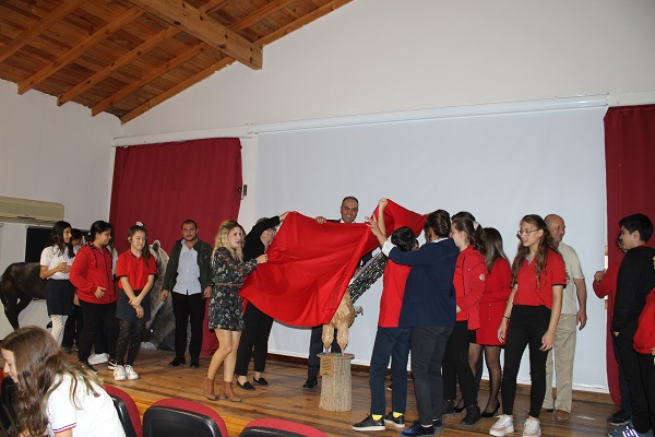 Geri Dönüşüm Kartal Heykeli’nin açılış töreninde öğrencileri İzmir Büyükşehir Belediyesi İklim Değişikliği ve Sıfır Atık Daire Başkanı Kemal Kılıç, Sasalı Doğal Yaşam Parkı Şube Müdürü Şahin Afşin ile İzmir Sınav Kolejleri Kurucu Temsilcisi İlker Sümer yalnız bırakmadı.