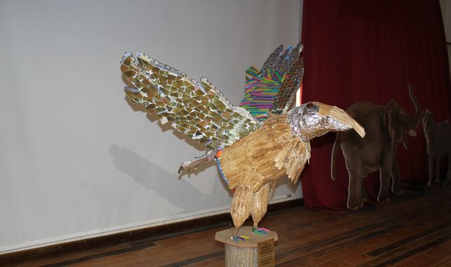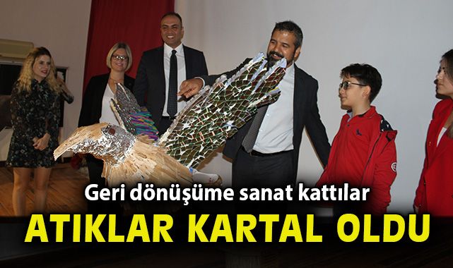Çevre ile ilgili mesajlarını sanat yoluyla vermek isteyen öğrenciler, dört aylık bir çalışma sonucunda ortaya çıkardıkları kartal heykelinin açılış töreninde “Doğayı kirletme, geleceğimi karartma!” dedi.İzmir Büyükşehir Belediyesinin desteğini de alarak öncelikle İzmir Doğal Yaşam Parkı çevresinde yerlere atılan geri dönüştürülebilir atıkları toplayan Karşıyaka Sınav Koleji ortaokul öğrencileri, bu yolla elde ettikleri teneke içecek kutusu, pet şişe, dondurma çubuğu, plastik kapak, CD gibi malzemeleri kullanarak bir buçuk metrelik bir kartal heykeli oluşturdu. Onlara sosyal bilgiler ve resim öğretmenleri mentörlük etti.