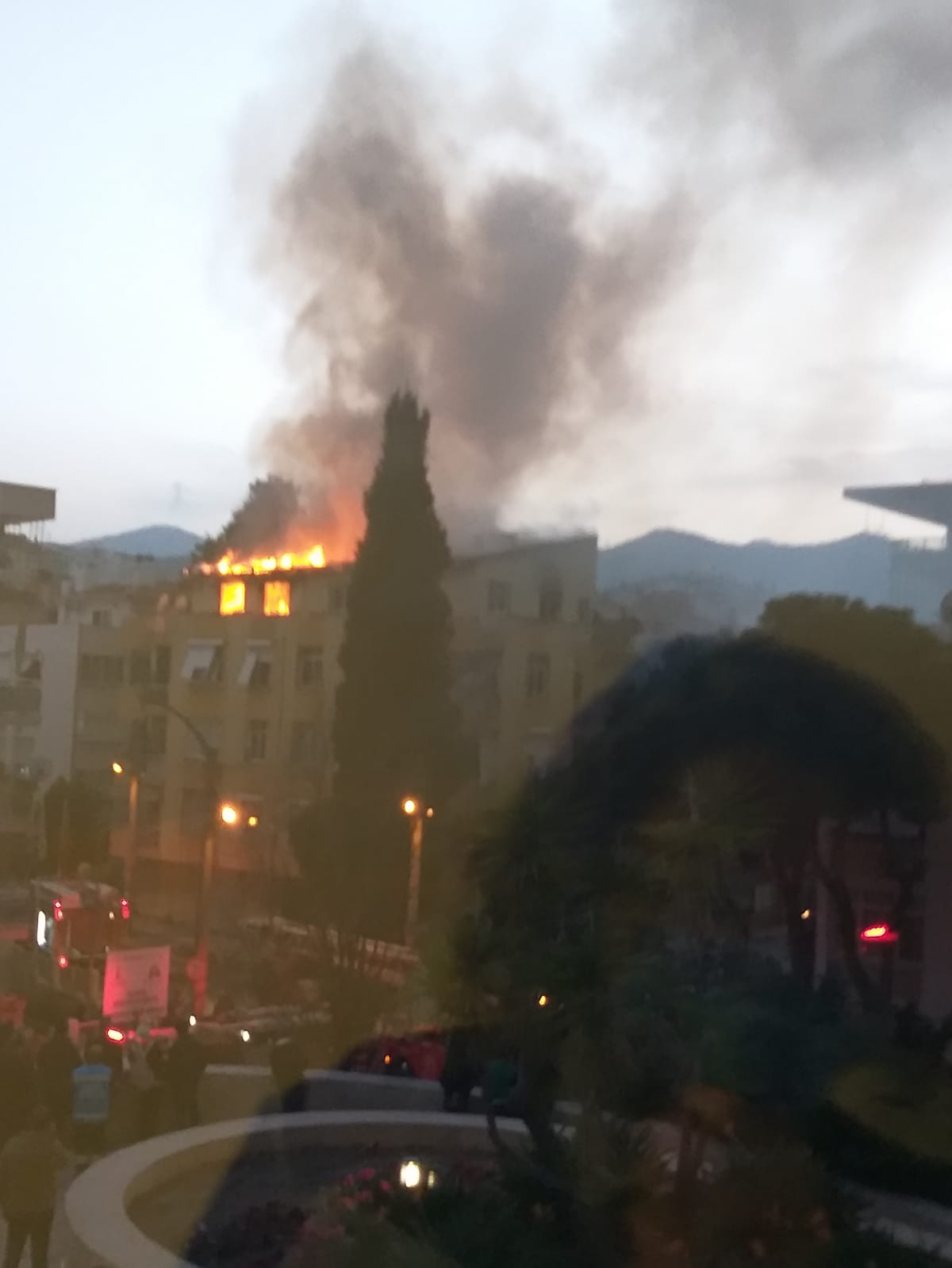 İzmir'de Ahmed Adnan Saygun Sanat Merkezi'nin karşısında yer alan binada çıkan yangın paniğe neden oldu.İzmir'de Mithatpaşa Caddesi üzerinde bulunan Ahmed Adnan Saygun Sanat Merkezi'nin karşısındaki binada yangın çıktı. Alevler binanın çatı katını sararken, yangını söndürmek için çok sayıda itfaiye ekibi olay yerine sevk edildi. Çevrede paniğe neden olan yangında can kaybı yaşanmadığı öğrenildi.