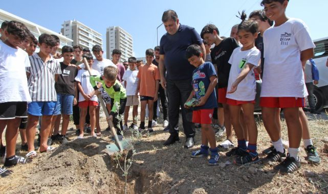 Karşıyaka’da unutulmaz günler yaşayan gençler, Karşıyaka Belediye Başkanı Dr. Cemil Tugay’a anlamlı armağanlar ile teşekkür etti. Tugay’a birer kitap hediye eden gençler, kendi şehirlerinden getirdikleri zeytin fidanlarını da Karşıyaka toprağıyla buluşturdu. Mustafa Kemal Mahallesi’ndeki zeytinlik alanda konuklarıyla birlikte fidanları diken Başkan Tugay “Gençlerimiz, hocaları ile birlikte birer kitap ve yörelerinde yetişen türden zeytin fidanlarını bize hediye etmek üzere yanlarında getirmişler. Fidanlarımızı hatıra olarak zeytinlik alanımıza birlikte diktik. Kalecilik yapan bir çocuğumuzun lakabı Muslera’ymış. Beraber diktiğimiz zeytine bir isim vermesini istedim; “Muslera adını koyalım” dedi. Öyle yaptık. Zeytin Muslera, Karşıyaka’ya bu yıl diktiğimiz on binlerce fidanla birlikte büyüyecek. Fidanlar büyürken Karşıyaka’mızın ve ülkemizin çocuklarının da geleceğinin aydınlık olmasını, sağlık ve huzurla büyümelerini diliyorum. Genç sporcu kardeşlerimize ziyaretleri ve hediyeleri için çok teşekkür ediyorum” ifadelerini kullandı.