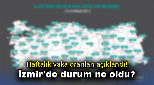 Geçtiğimiz hafta, yüz binlik tabloda İzmir'de vaka oranı