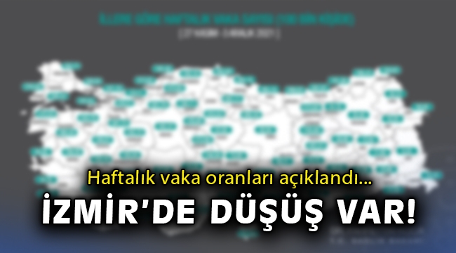 Haftalık verilere göre 100 bin kişide görülen Covid-19 vaka sayısı İstanbul'da 269,58, Ankara'da 182,37, İzmir'de 69,58 oldu. İzmir'de bu sayı geçen hafta 70,65 olarak açıklanmıştı.