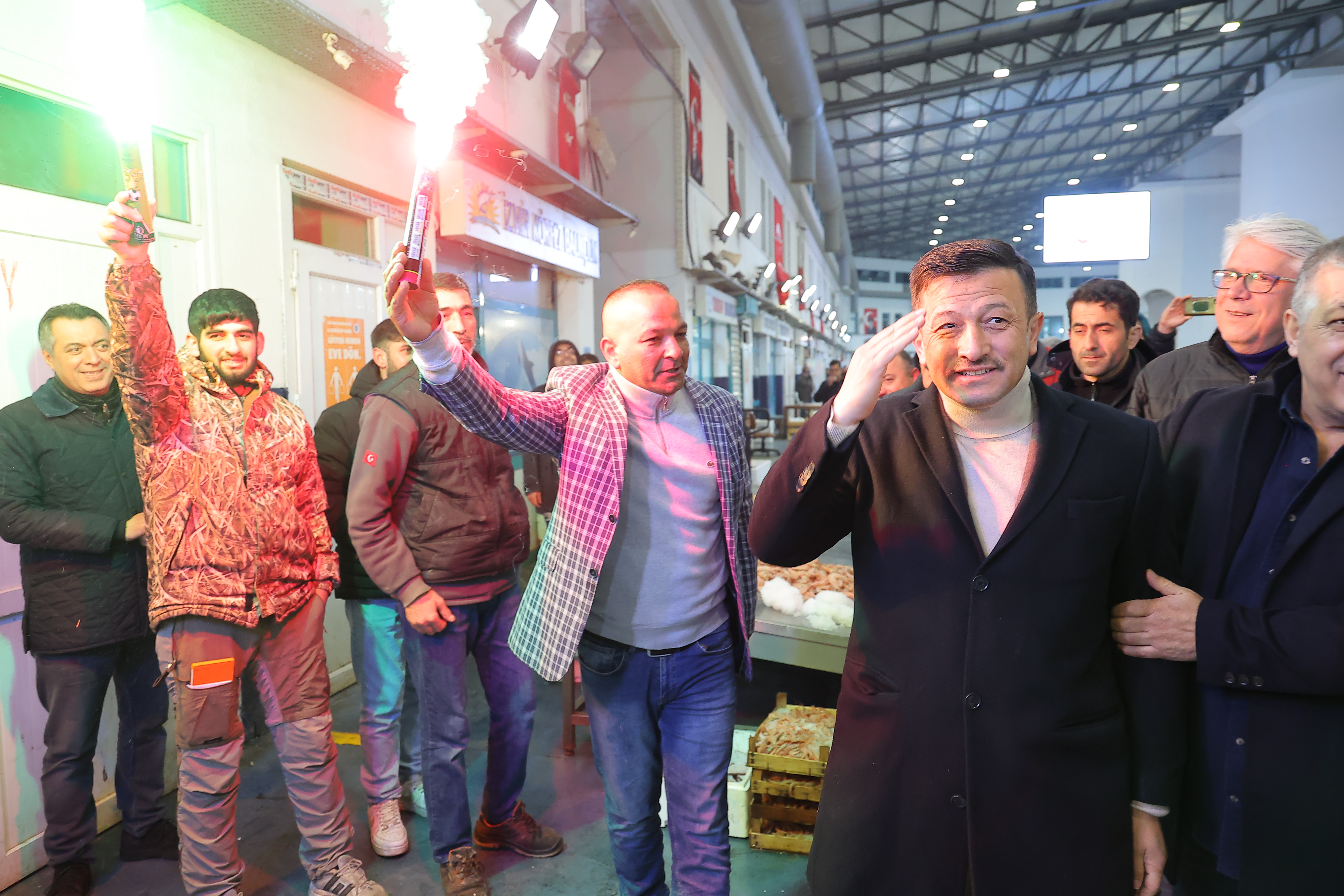 DAĞ, ESNAF İLE SAHUR YAPTI Hal esnafını tek tek ziyaret eden Dağ, talepleri dinleyerek hatıra fotoğrafları çektirdi. Akabinde hal içerisinde bulunan İzmir Balıkçı İş Adamları Derneği’ne geçen Dağ, burada esnaf ile birlikte sahur yaptı.