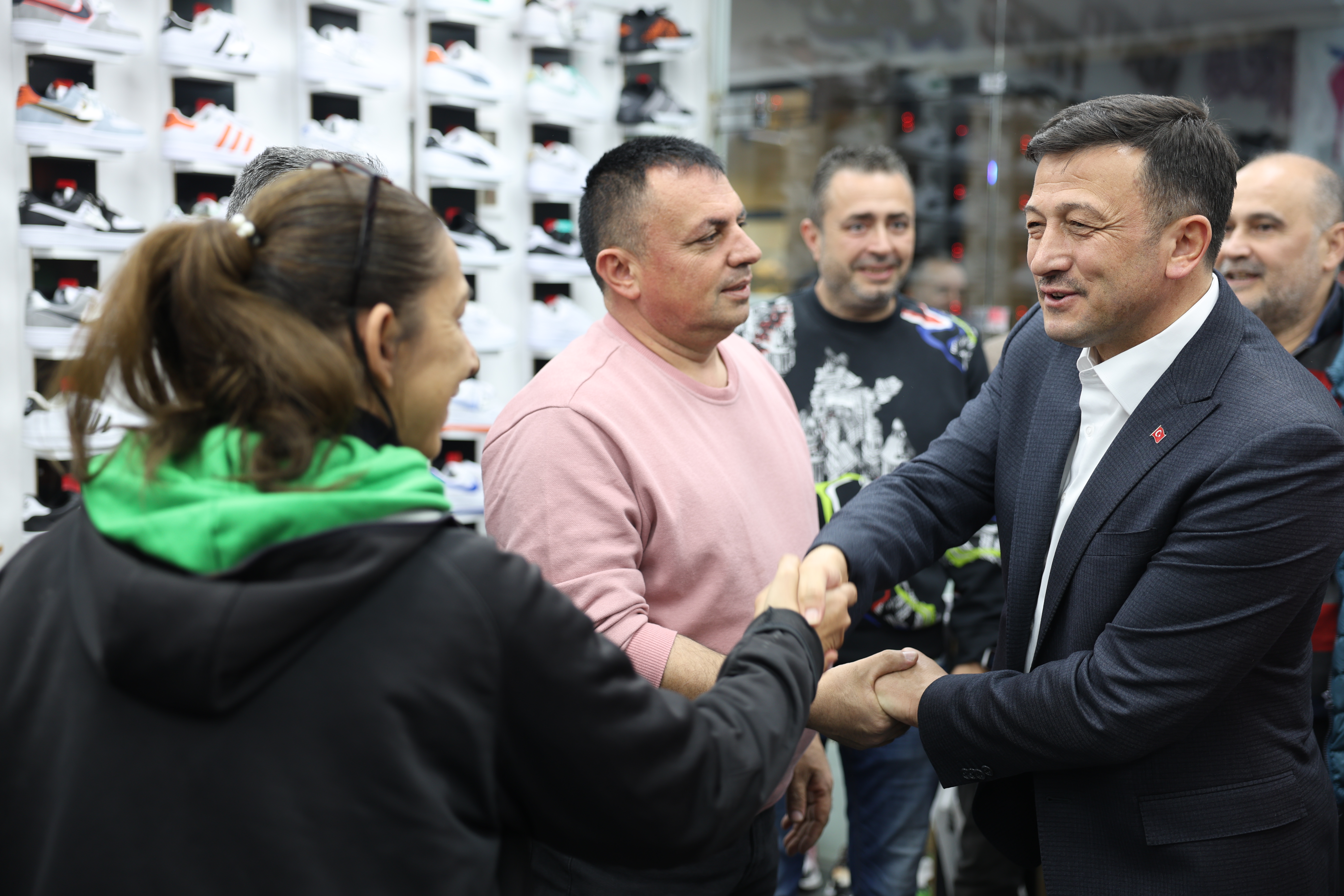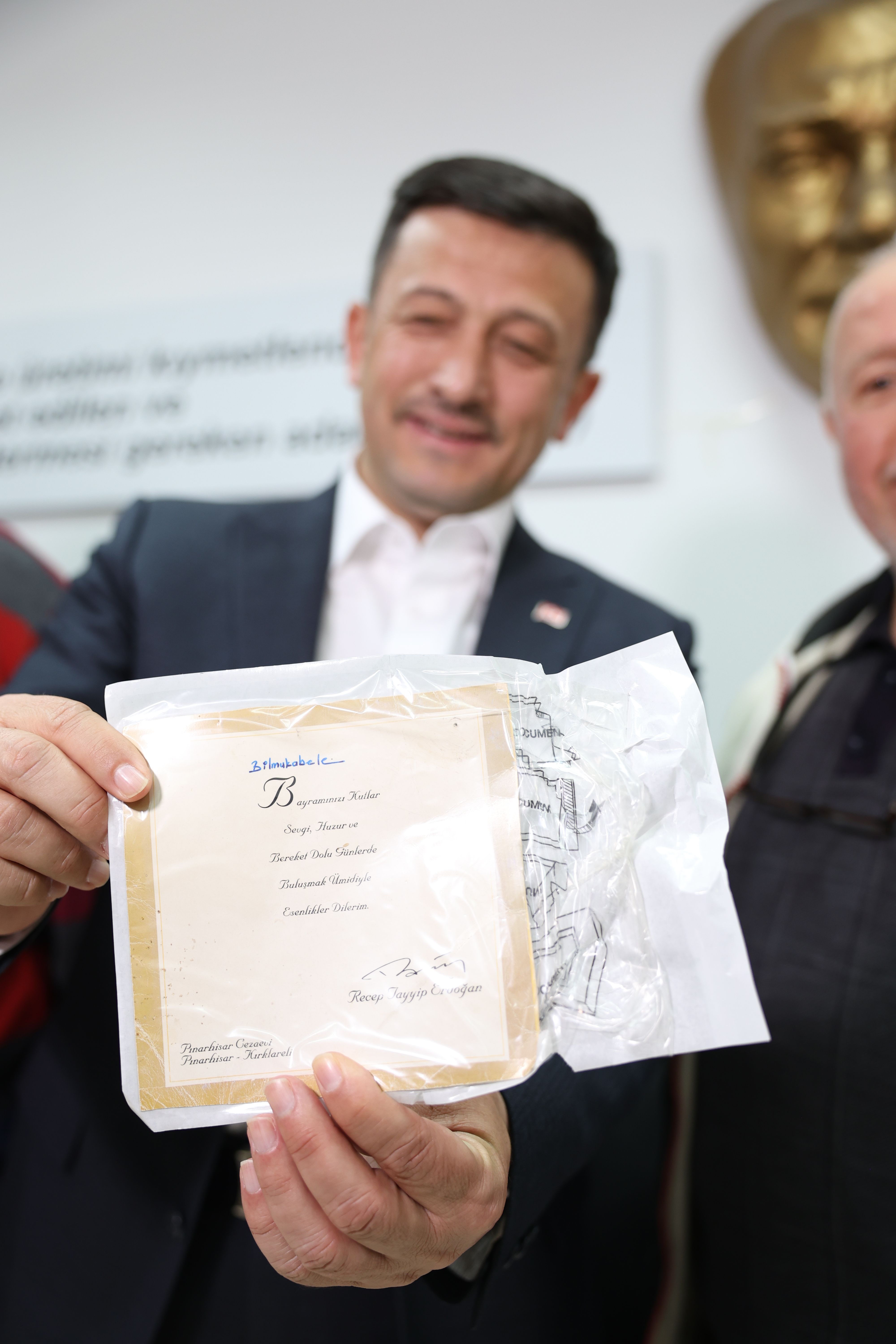 HAMZA DAĞ’A ANLAMLI HEDİYE Hamza Dağ’ın konuşmasının ardından söz alan bir esnaf, yıllar önce Cumhurbaşkanı Recep Tayyip Erdoğan’ın Pınarhisar Cezaevi’nde kendisine gönderdiği ‘bayram kutlaması kartını’ Hamza Dağ’a hediye etti. Anlamlı hediyeyi görünce duygulanan Dağ, esnafa teşekkür etti. HAMZA DAĞ ESNAFIN TALEPLERİNİ DİNLEDİ Hamza Dağ daha sonra beraberindeki Cumhur İttifakı Bornova Belediye Başkan Adayı Cevdet Çayır ve AK Parti Bornova İlçe Başkanı Koray Toprakçı ile Ayakkabıcılar Sitesi’ndeki esnafını gezerek onların taleplerini dinledi.