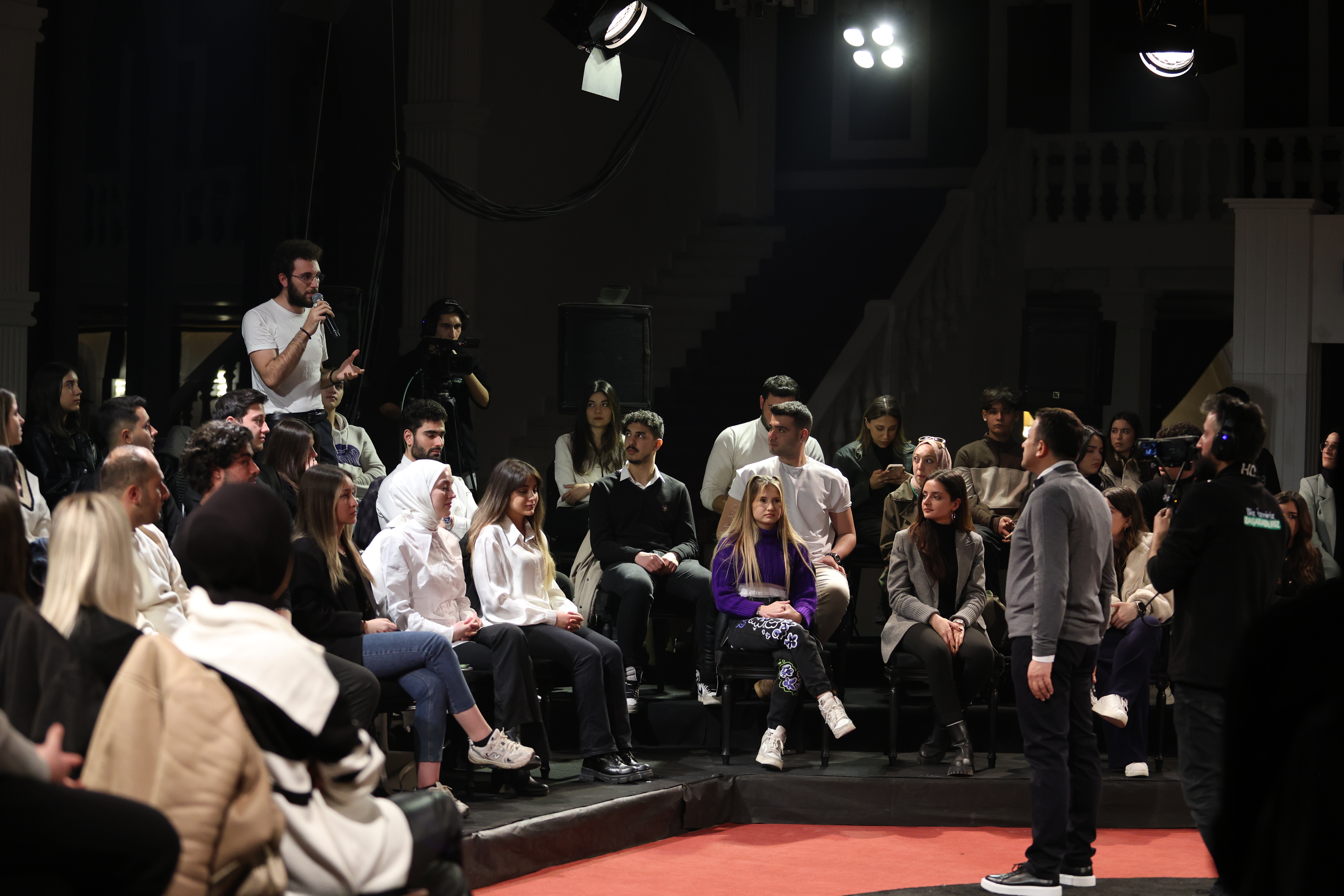 HAMZA DAĞ’I DUYGULANDIRAN ANI Bir gencin siyasetin hayatına kattıklarını ve kendisinden götürdüklerini sorması üzerine Hamza Dağ duygulandı. Dağ, yaşadığı hüznü şu cümlelerle anlattı: “Gençliğimi siyasete harcadım demiyorum, gençliğimi siyasetle bereketlendirdim diyorum. Tabii içimde ukde olan ne var? Ben çocuklarımın yeteneklerini Kovid-19 zamanında keşfettim. Kovid-19 olmasaydı ben çocukların yeteneklerini göremeyecektim belki de. Benim için az yetenekli dediğim çocuğumun aslında ne kadar çok yetenekli olduğunu gördüm. İşte bu biraz sizi zorluyor.” Dağ’ın bu anları anlatırken duygulanması, salondakileri de duygulandırdı.