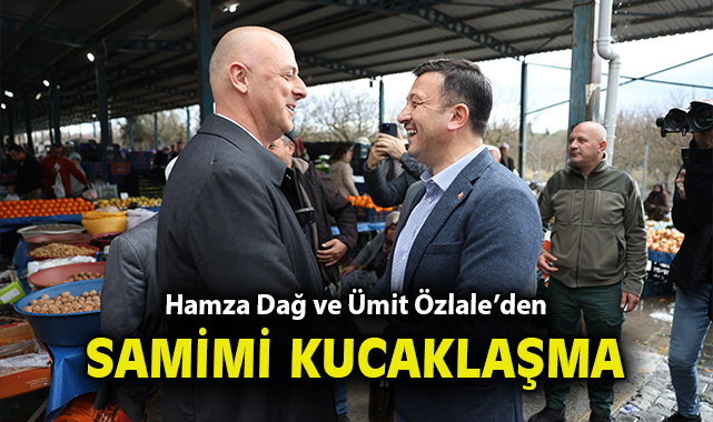 Hamza Dağ daha sonra Sami Mollaahmet ile birlikte Kınık Poyracık Pazaryeri’ni ziyaret etti. Dağ pazar yeri girişinde İYİ Parti İzmir Büyükşehir Belediye Başkan Adayı Ümit Özlale ile karşılaştı. İki aday samimi bir şekilde kucaklaştı. Renkli görüntülerin olduğu karşılaşmada, iki aday birbirlerine ve ekiplerine başarı temennisinde bulundu.