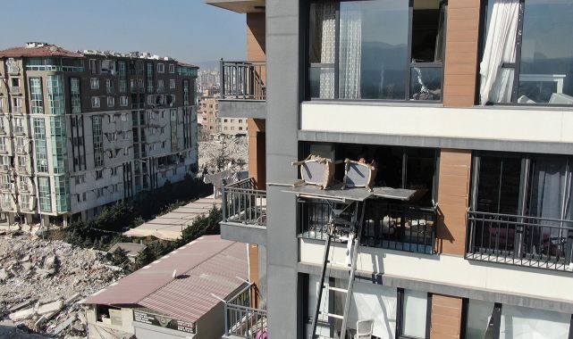 Kahramanmaraş merkezli iki büyük depremin ardından Hatay'da çok sayıda bina yıkılırken, çok sayıda bina da hasar gördü. Hasar gören binalar boşaltılırken, vatandaşlar ise eşyalarını taşımaya başladı. Para karşılığı içeriye giren bir şahıs, vinç yardımıyla dairedeki eşyaları aşağıya indirdi. Dairenin balkonundan vince yüklenerek asansörlü sistemle aşağıya indirilen eşyalar yol kenarındaki kamyona yüklendi. Vatandaşların eşya taşıma telaşı kameraya yansıdı.