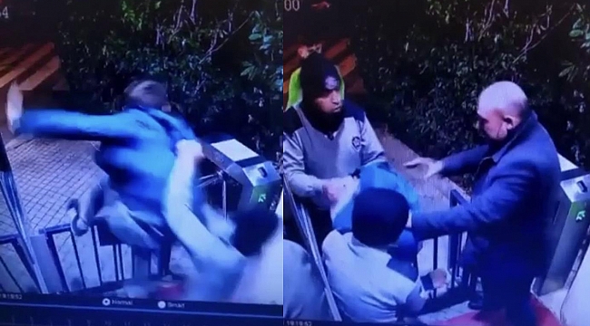 bariyerlerin üstünden atladığı esnada market çalışanları ve sitenin güvenlikleri