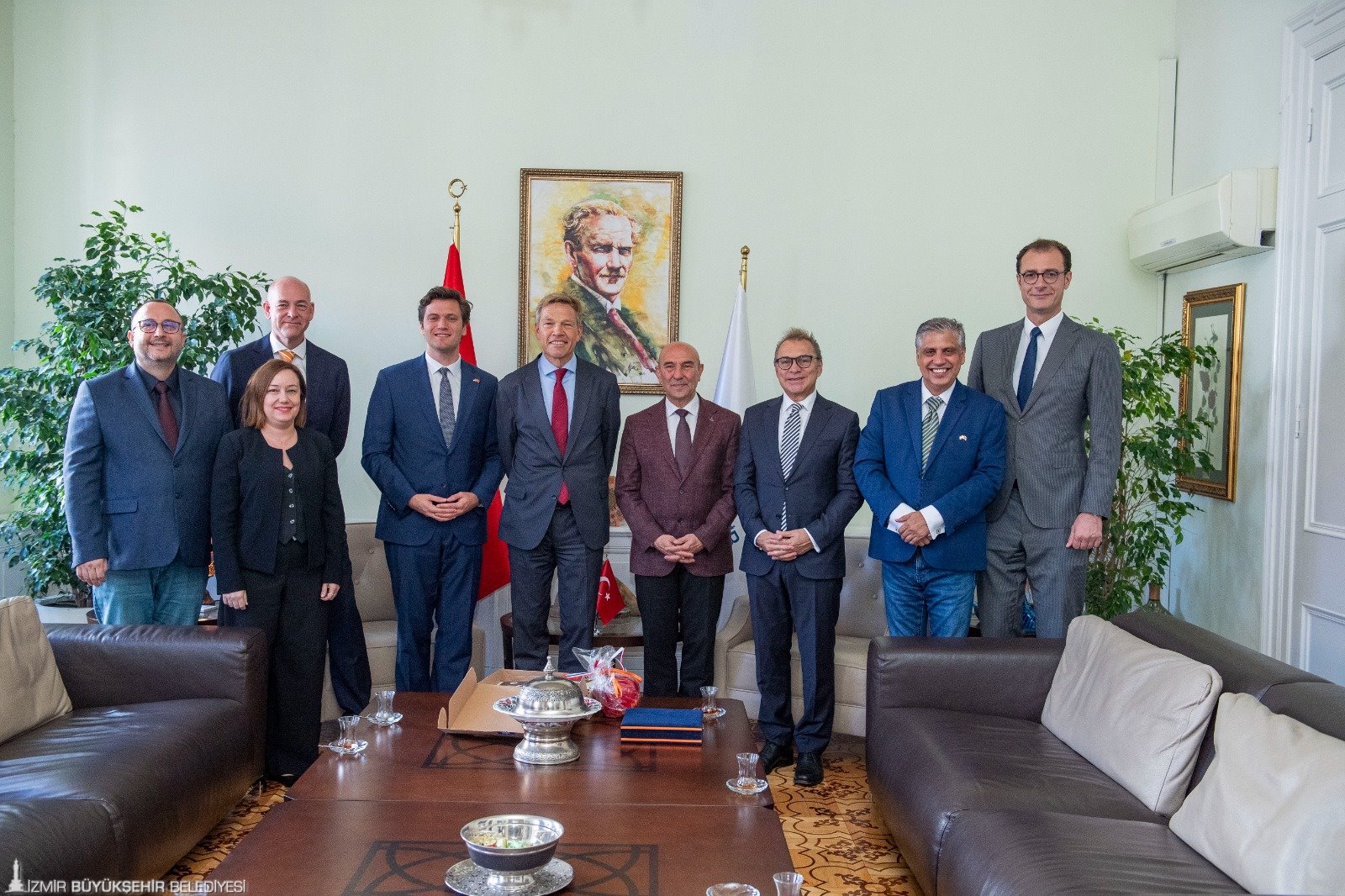 Hollanda Büyükelçisi Joep Wijnands ve beraberindeki heyet İzmir Büyükşehir Belediye Başkanı Tunç Soyer’i makamında ziyaret etti. Başkan Soyer, 2026’da düzenleyecekleri Botanik EXPO’su için Hollanda’nın tecrübe ve birikiminden yararlanmak istediklerini söyledi. Büyükelçi Wijnands ise pek çok alanda iş birliğine açık olduklarını iletti.