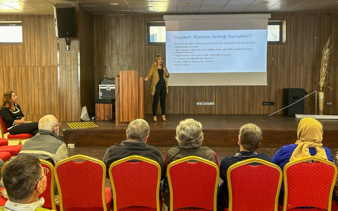 İzmir Büyükşehir Belediyesi Zübeyde Hanım Huzurevi Yaşlı Bakım ve Rehabilitasyon Merkezi'nde, 14 Kasım Dünya Diyabet Günü nedeniyle diyabet hastalığına ilişkin bilgilendirme yapıldı. Medicana International İzmir Hastanesi’nden Uzman Dr. Hümeyra Bozoğlan tarafından verilen eğitime merkezin hekimi Dr. Ayşe Özge Güler de eşlik etti. Hekimler, huzurevi sakinlerine diyabet hastalığından korunmak için yapılması gerekenleri, hastalığın yol açtığı sorunları ve diyabet ile yaşarken dikkat edilmesi gereken noktaları anlattı. Eğitimin ardından katılanlara şeker ölçümü de yapıldı.