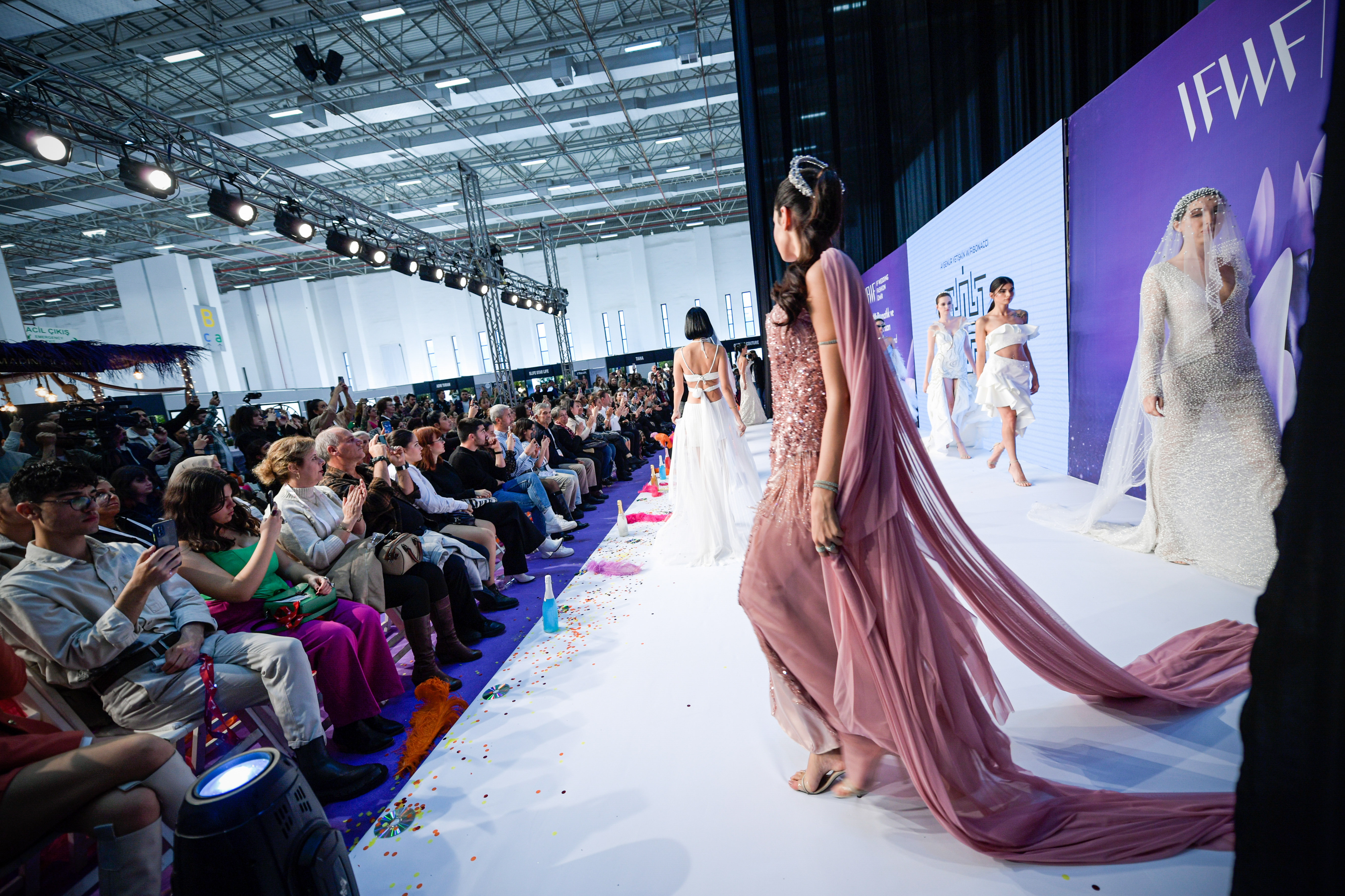 2024 modası IF Wedding Fashion podyumlarındaModa ve tasarımın birleşimi IF Wedding Fashion İzmir, sektörün önde gelen profesyonellerine 17. kez fırsatlar sunmaya devam edecek. 2024 yılı koleksiyonlarının ilk kez sergileneceği IF Wedding Fashion İzmir, bu yıl da birbirinden değerli mankenlerin eşliğinde, ünlü markaların ve genç yeteneklerin tasarımlarının yer alacağı ışıltılı podyumlarıyla göz kamaştıracak. Fuar kapsamında birçok defile gerçekleştirilecek. Fuara katılan tasarımcılar, kendileri için özel olarak oluşturulan alanda, gelinlik ve abiye koleksiyonlarını sergileyecek. Tasarımcı adaylarına, profesyonel hayatlarındaki ilk defilelerini sergileme olanağı tanıyan Gelinlik Tasarım Yarışması’nda geçen yıl ödül kazanan Enes Yolcu’nun “Performans Defilesi” de modacı, katılımcı ve ziyaretçilerin beğenisine sunulacak.