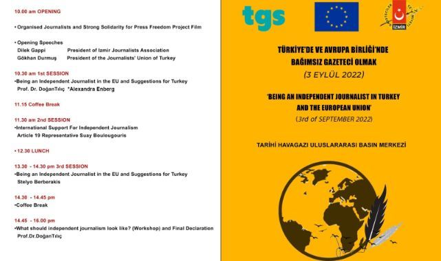 İzmir Gazeteciler Cemiyeti, Avrupa Birliği tarafından finanse edilen ve Türkiye Gazeteciler Sendikası (TGS) iş birliği ile yürütülen ‘Güçlü Gazeteci, Özgür Medya’ Programı’nın son 3 yıllık proje döneminin kapanışını ‘Türkiye’de ve Avrupa Birliği’nde Bağımsız Gazeteci Olmak’ konulu uluslararası bir çalıştay ile yapıyor. 3 Eylül Cumartesi günü Tarihi Havagazı Uluslararası Basın Merkezi’nde gerçekleşecek programa, İzmir medya temsilcileri ve yabancı gazeteciler katılacak.