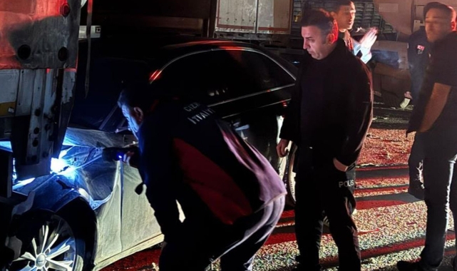 Otomobil iki tır arasında sıkıştıGeriye doğru hareket eden tır, Ö.İ. idaresindeki otomobili arkasında bulunan 06 DS 0815 plakalı bir başka tıra doğru iterek sıkıştırdı. Tonlarca ağırlıktaki iki tırın arasında kalan lüks otomobil, çarpmanın şiddetiyle adeta kağıt gibi ezilerek büyük hasar aldı.