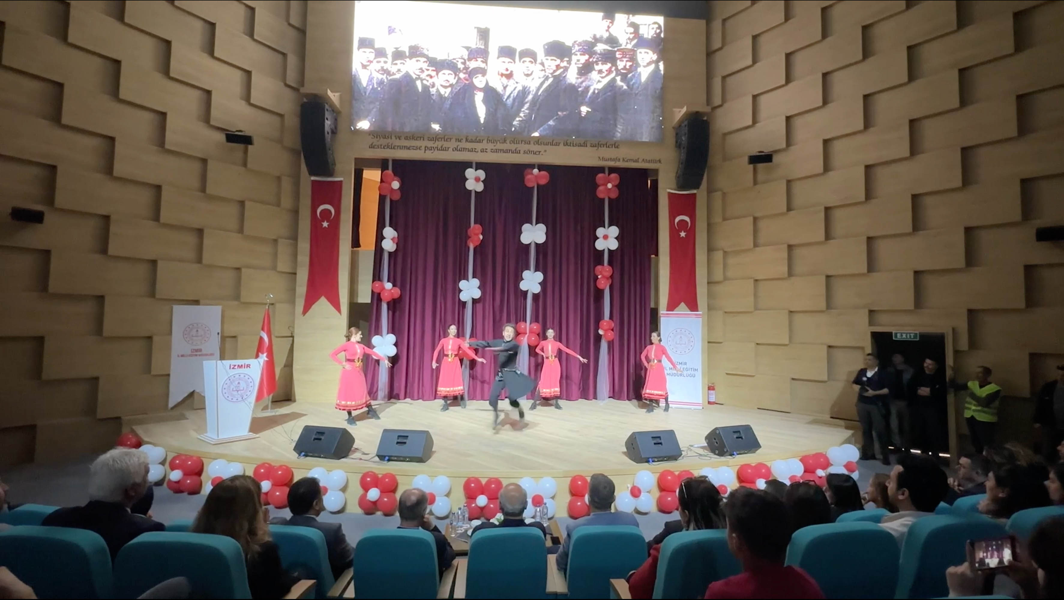 Milli Eğitim Müdürlüğü koordinasyonunda çeşitli okullar ve halk eğitim merkezlerince hazırlanan folklor gösterileri, mini tiyatro oyunu, şarkı ve şiirlerin yer aldığı programda yeni İktisat Kongresi Binası ilk konuklarını ağırladı. Programda konuşan İzmir Valisi Yavuz Selim Köşger, gençlere tarihi bir güne tanıklık ettiklerini, yeniden inşa edilen tarihi kongre binasının ilk konukları olduklarını belirterek, “Ülkenin kuruluş süreci devam ederken, bir taraftan Lozan görüşmelerinin çıkmaza girdiği ve ara verildiği bir dönemde Ulu Önder Gazi Mustafa Kemal Paşa liderliğinde, Kazım Karabekir ve Fevzi Çakmak paşalarla birlikte o günkü coğrafyadaki tüm ekonomik guruplardan binlerce kişinin katılımıyla, İzmir’de, yeni kurulacak ülkenin ekonomik, iktisadi temellerinin atıldığı tarihi bir kongre gerçekleştirilmiştir. İşte, Cumhuriyetimizin 100. yılında, o binanın temelleri üzerinde yenilenen kongre binasının ilk konukları, Türkiye Cumhuriyeti’nin ikinci yüzyılını gerçekleştirecek siz gençlersiniz. Geleceği sizlere emanet ediyoruz. Tüm dünya, Türkiye’yi daha ileriye taşıyacak, ülkeyi en büyük dünya ekonomileri arasına sokacak siz gençleri bekliyor. Bu salon buna şahitlik ediyor.” diye konuştu.