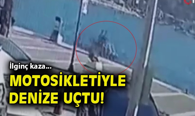 İzmir'in Çeşme ilçesinde yaşanan ilginç kazada, bir sürücünün motosikletiyle denize uçtuğu anlar güvenlik kamerasına anbean yansıdı.