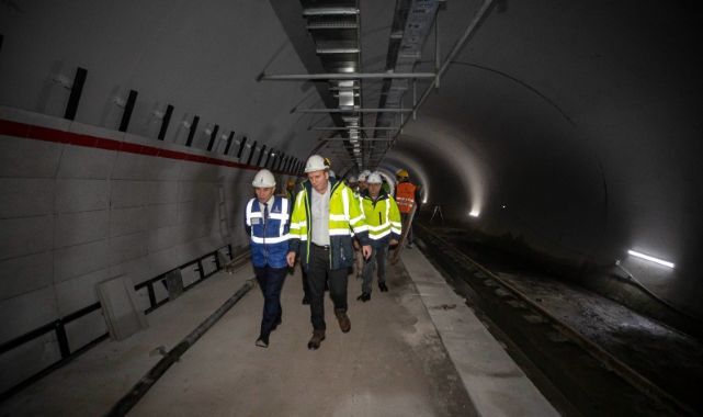 İzmir Büyükşehir Belediyesi’nin raylı sistem çalışmaları kesintisiz sürüyor. Başkan Tunç Soyer yapımında son aşamaya gelinen Narlıdere Metrosu’nda incelemelerde bulundu. İzmir Büyükşehir Belediyesi Genel Sekreter Yardımcısı Özgür Ozan Yılmaz ve İzmir Büyükşehir Belediyesi Raylı Sistem Dairesi Başkanı Mehmet Ergenekon’un da eşlik ettiği inceleme turu kapsamına Şehitlik İstasyonu’ndan peronlara inen Başkan Soyer, projede çalışan işçilerle sohbet etti.