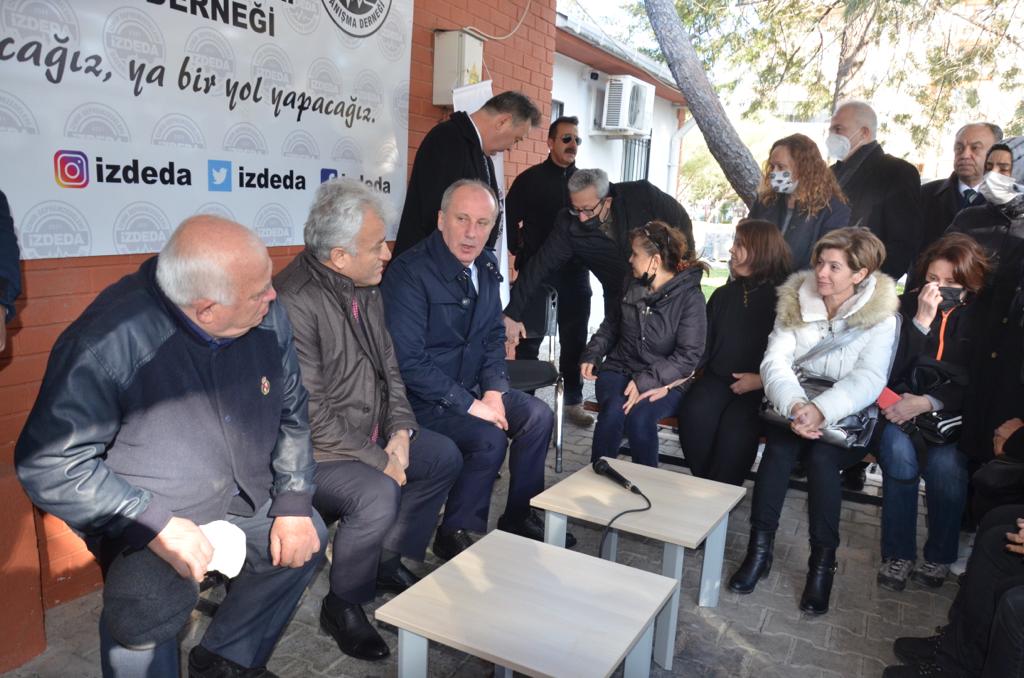 Ziyaretlerine sabahın erken saatlerinde İzmir Depremzedeler Derneği (İZDEDA) ile başlayan İnce, burada Dernek Başkanı Haydar Özkan ve depremzedeler ile bir araya geldi.