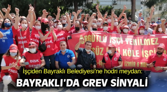 Yapılan açıklamada, sendika temsilcilerinin ve işçilerin, bazı yöneticiler tarafından tehdide ve baskıya maruz bırakıldığı ifade edilirken, sorunların çözümü için adım atılmadığı söylendi. İşçiler, yapılan açıklamada, sorunların çözülmemesi durumunda önce iş yavaşlatma, ardından grev mesajı verdiler.“TEHDİTLERE VE BASKILARA BOYUN EĞMEYECEĞİZ”Sendika adına basın açıklamasını yapan DİSK 6 Nolu Şube Sekreteri Muhsin Akıcı, sorunların çözülmemesi durumunda greve gidileceği mesajı verdi ve şunları söyledi; “Yaklaşık 2 aydır bayraklı belediyesinden çalışan üyelerimizin yaşadığı başta işyeri değişikliklerinde yaşanan hukuksuz uygulamalar çeşitli vasıflarda çalışan üyelerimizin vasıflarının hala verilmemiş olması, toplu sözleşme ile kazanılan pirim haklarımızın geriye dönük kısmının hala ödenmemiş olması, izin kullanırken ya da izin ücretimizi talep ederken yaşanan sıkıntılar, Bununla birlikte terfi bekleyen işçilerimizin terfileri ile ilgili çalışmaların savsatılması, kadın üyelerimizin çalıştıkları iş kodları dışında işlerde çalıştırılmaya zorlanması, sendika temsilcilerine sendika yöneticilerine ve üyelerimize yönelik tehdit ve hakaretlere işçilerin iş sağlığı ve iş güvenliği kapsamında aldığı iş kıyafetlerinin eksik verilmesi gibi birçok konuda sıkıntılar yaşanmaktadır. Bu konuların çözülmesi için bütün diyalog yolları tüketilmiştir. Sorunlarımıza çözüm bulunamamıştır. Bundan sonra bizim için örgütlü gücümüzü kullanmaktan başkaca bir yol bırakılmamıştır. Maalesef şirketle yaptığımız görüşmelerin sonuç vermediğini belirtmek isteriz. Mevcut sorunlarımızın çözülmemesi durumlarında önümüzdeki günlerde kitlesel bir eylem, iş yavaşlatma ve daha sonrasında iş bırakma eylemlerimiz olacaktır. Tehditlere ve baskılara boyun eğmeyeceğiz.”