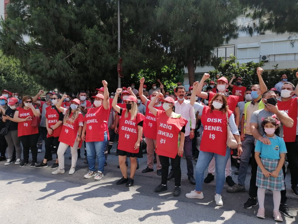 Devrimci İşçi Sendikaları Konfederasyonu (DİSK) İzmir 6 No’lu Şubesi, Bayraklı Belediyesi’ne bağlı Bayraklı A.Ş.’de çalışan işçilerin yaklaşık iki aydır toplu sözleşmeyle güvenceye alınan haklarını alamadıkları ve bunun yanında mobbinge maruz bırakıldıkları ve iş yerlerinde işçinin rızası olmadan iş yeri ve görev değişikliği yapıldığı gerekçesiyle bugün şirket önünde bir basın açıklaması gerçekleştirildi.