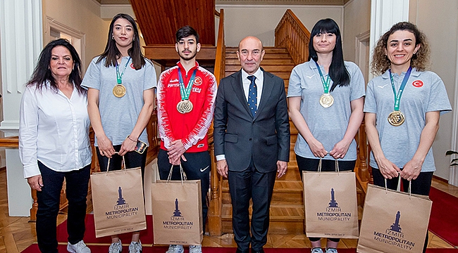 bir araya geldi. Başkan Soyer, İzmirli genç sporcuların kazandığı başarıların
